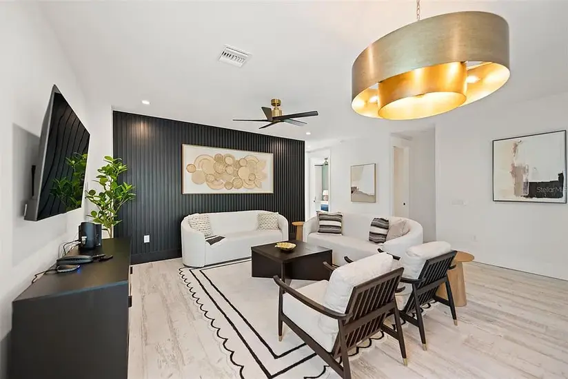 This residence reimagines Mediterranean heritage through a fresh, coastal-modern sensibility, resulting in a home that feels both timeless and laid-back. The façade is articulated with elegant arched loggias, clean white stucco walls, and striking dark-framed windows — a harmonious blend of tradition and contemporary clarity. Generous balconies and covered outdoor living areas create shaded retreats, deepening the connection between interior spaces and the surrounding tropical landscape. Elevated above grade for resilience and peace of mind, the design thoughtfully acknowledges its Florida context while preserving a sense of lightness and ease. Expansive glazing channels abundant natural light into the home, dissolving boundaries between inside and out and framing glimpses of palms and sea breezes. Indoors and out, the interplay of solid volumes, curved arches, and open voids strike a deliberate balance between elegance and relaxed coastal charm. The result is a residence that merges heritage-inspired form with modern coastal living — graceful, grounded, and effortlessly inviting.